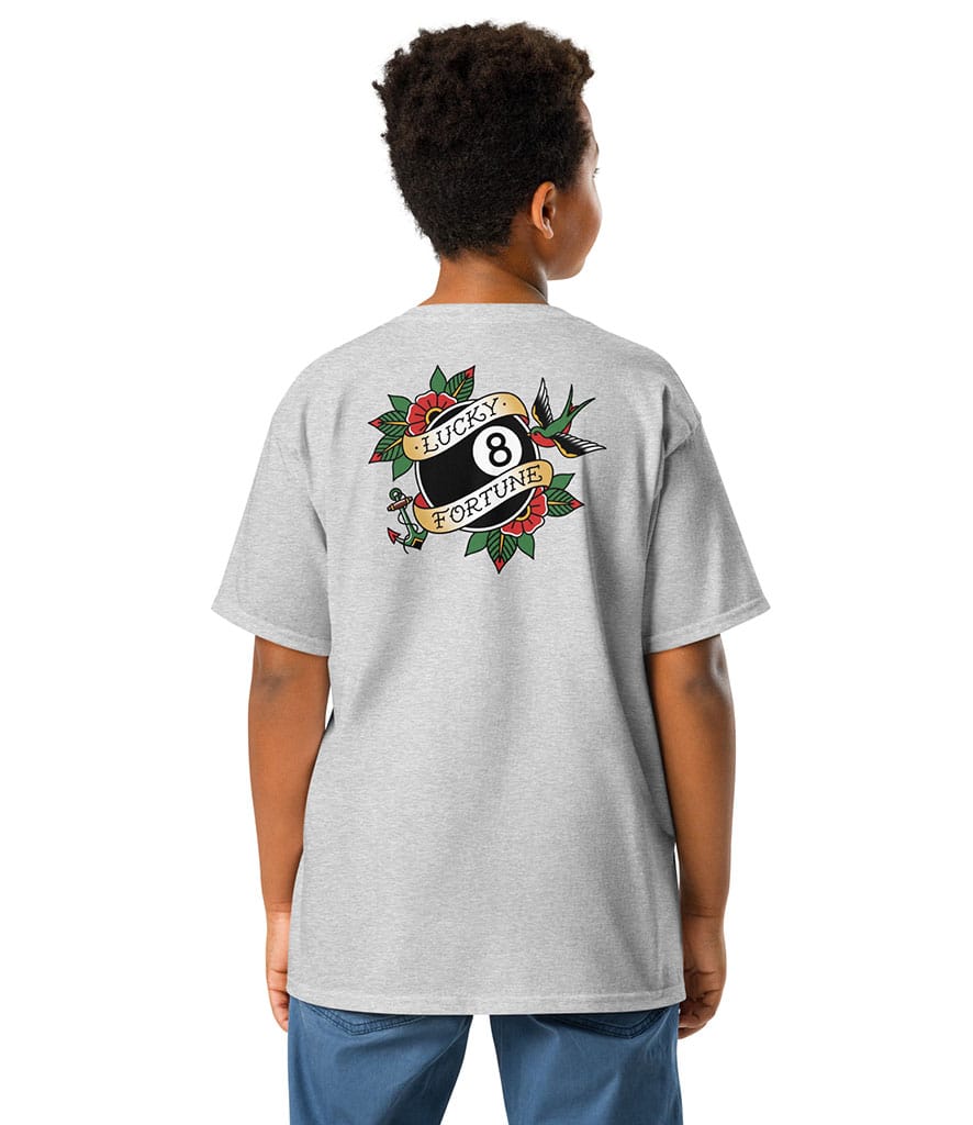 Inspired by classic sailor artwork, this Lucky 8 Ball T-Shirt brings vintage style and fun symbolism to kids’ everyday outfits.