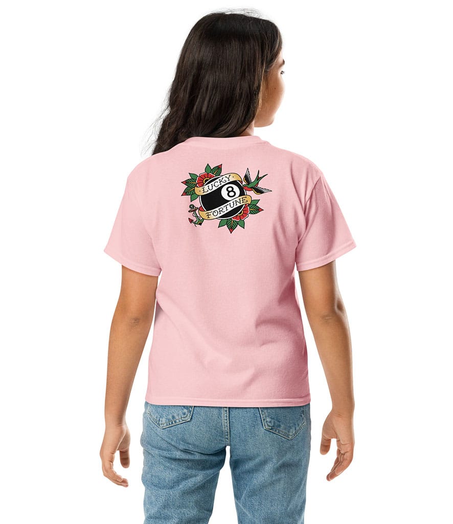 The 8 ball is often seen as a symbol of good luck and confidence, making this t-shirt perfect for kids who enjoy bold designs with personality. Comfortable, durable and easy to wear, it’s great for everyday adventures and adding a cool, retro-inspired touch to any outfit