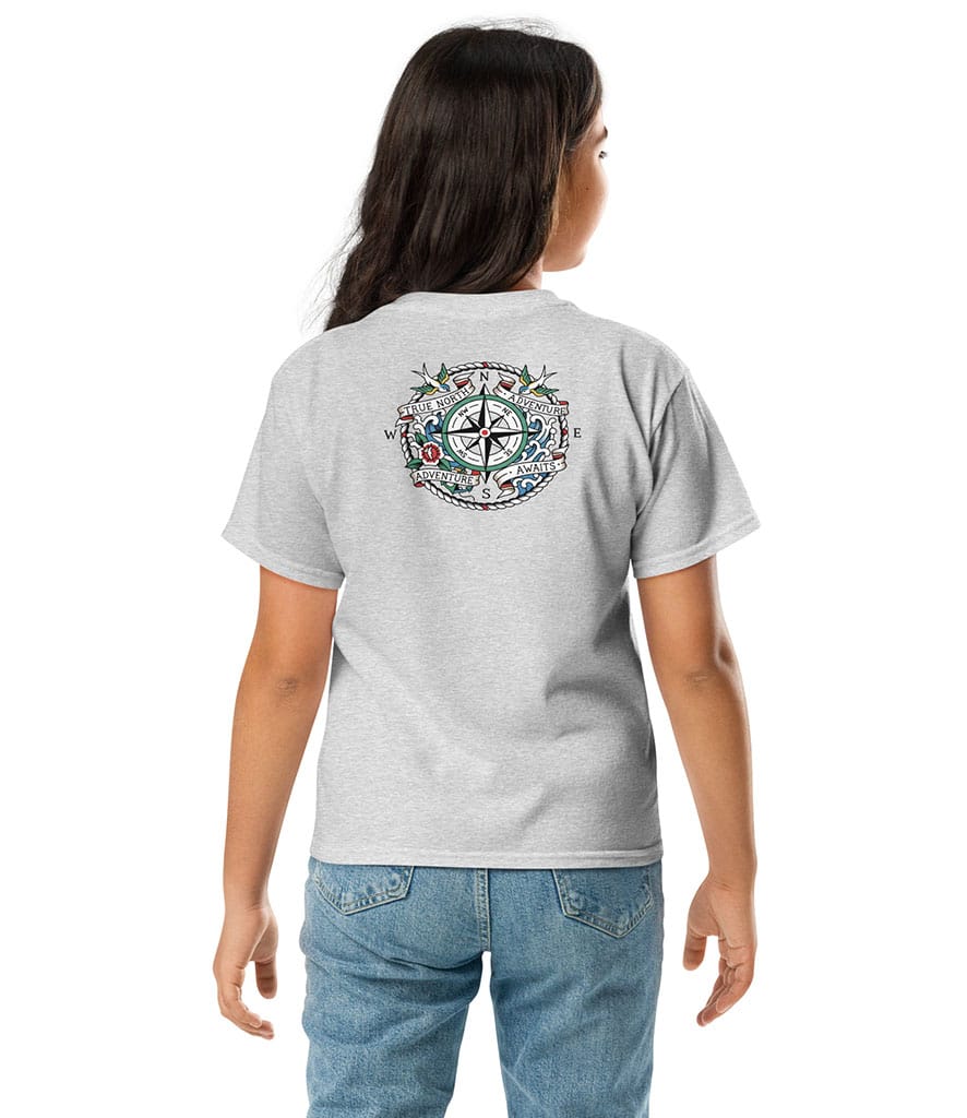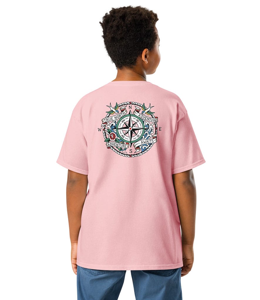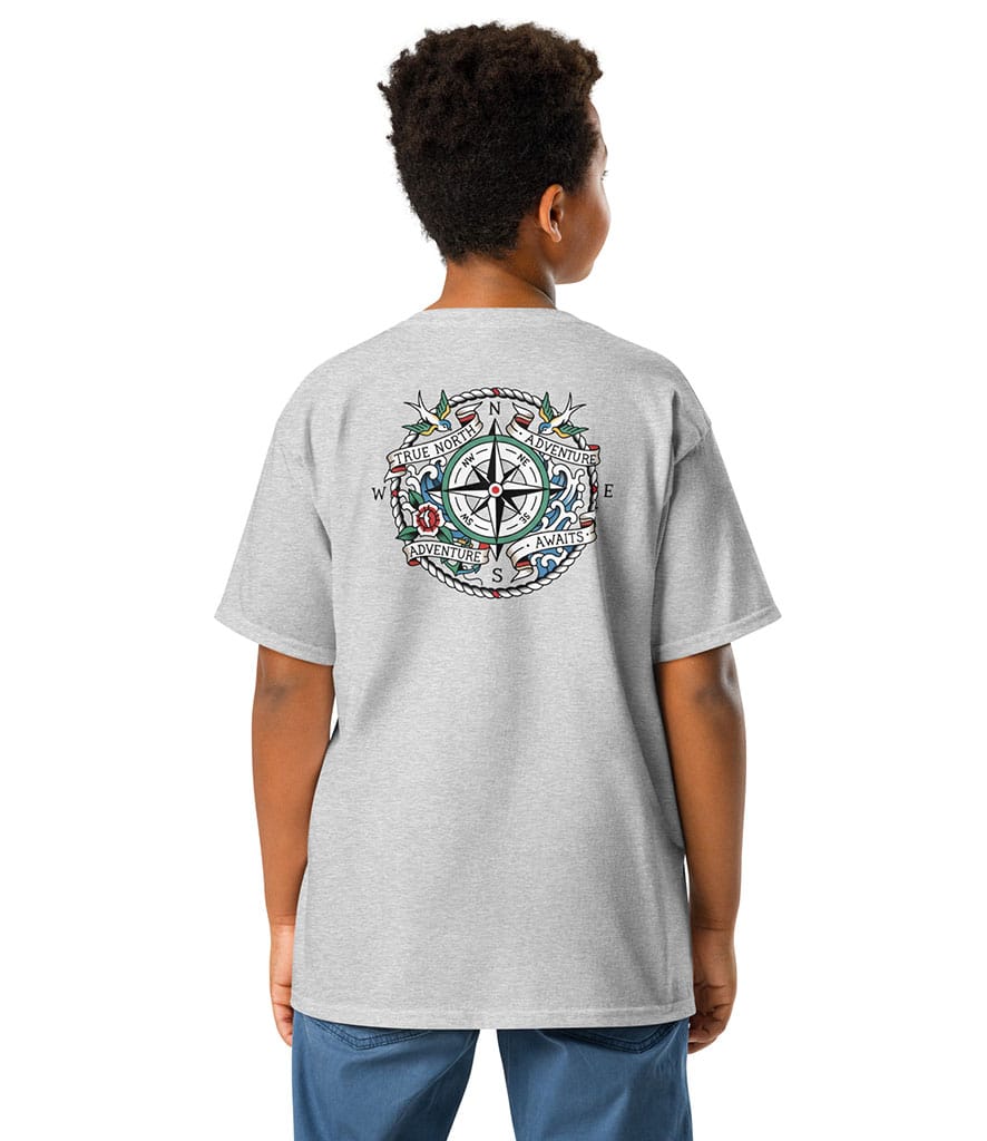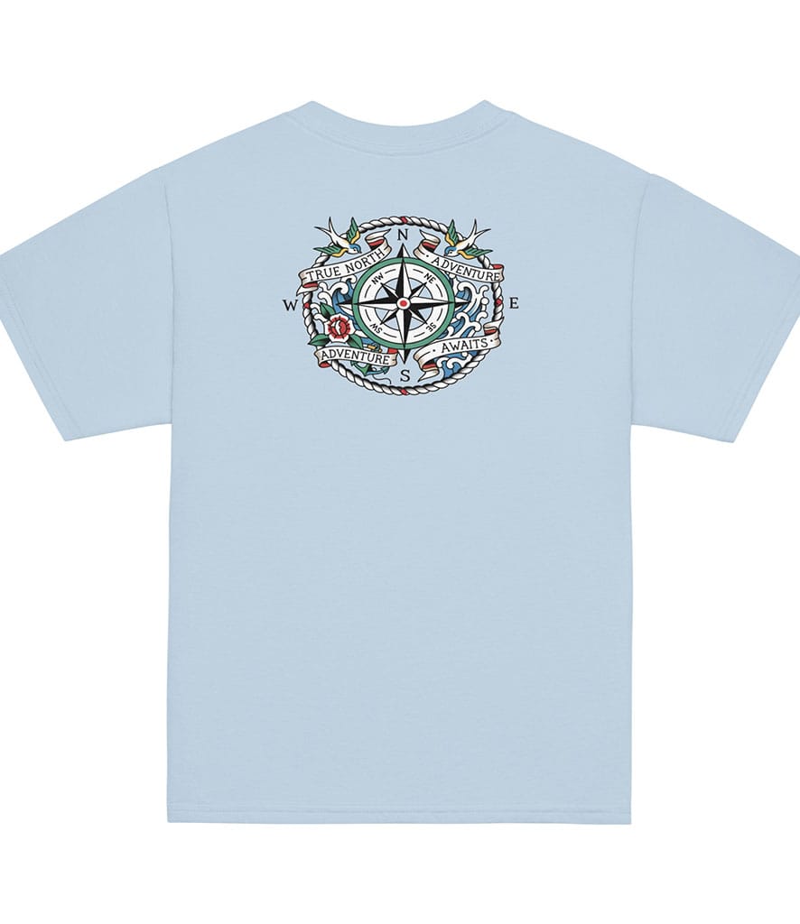 Set off on your next adventure with the True North Compass T-Shirt, inspired by classic sailor artwork and nautical stories.